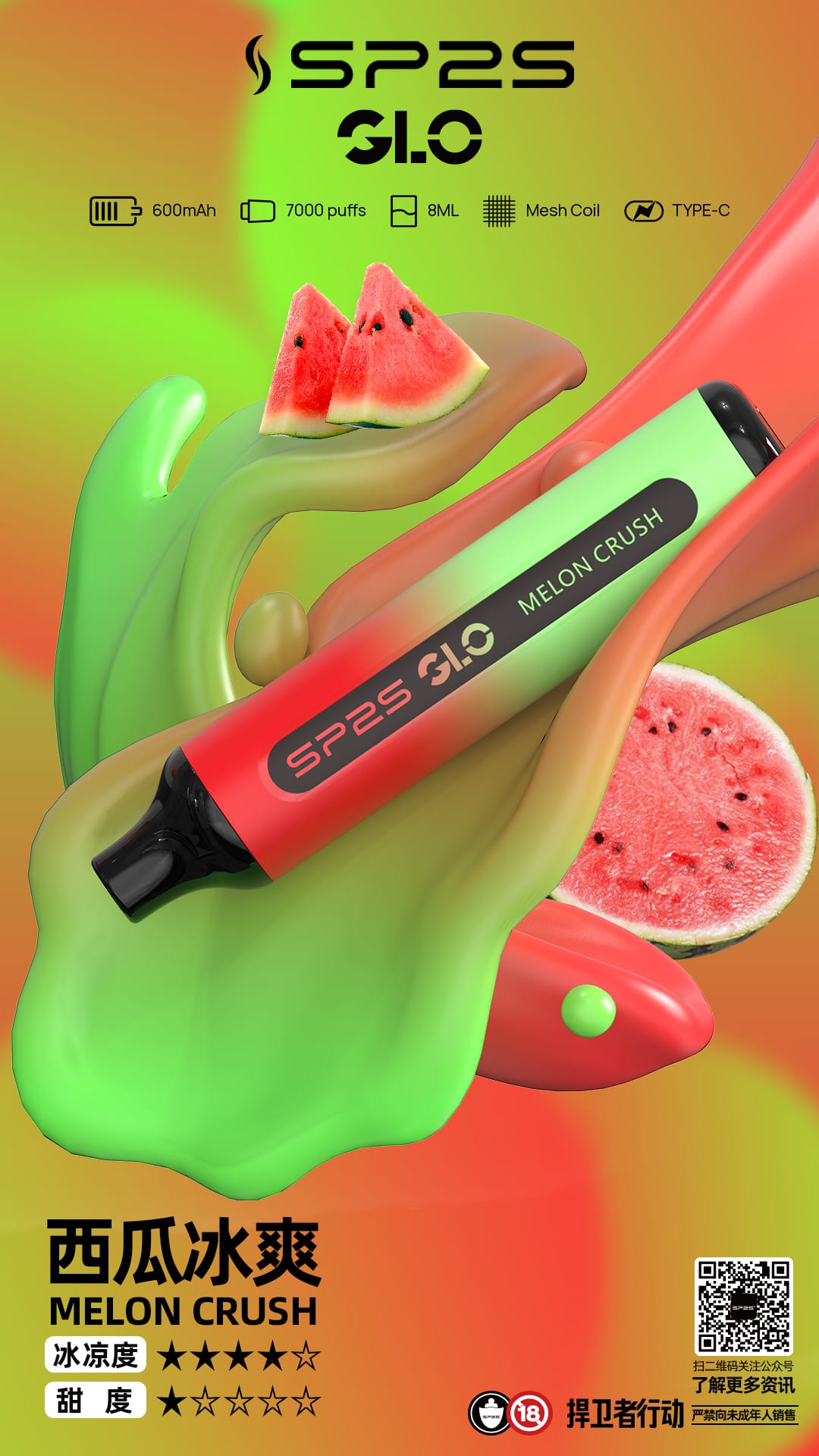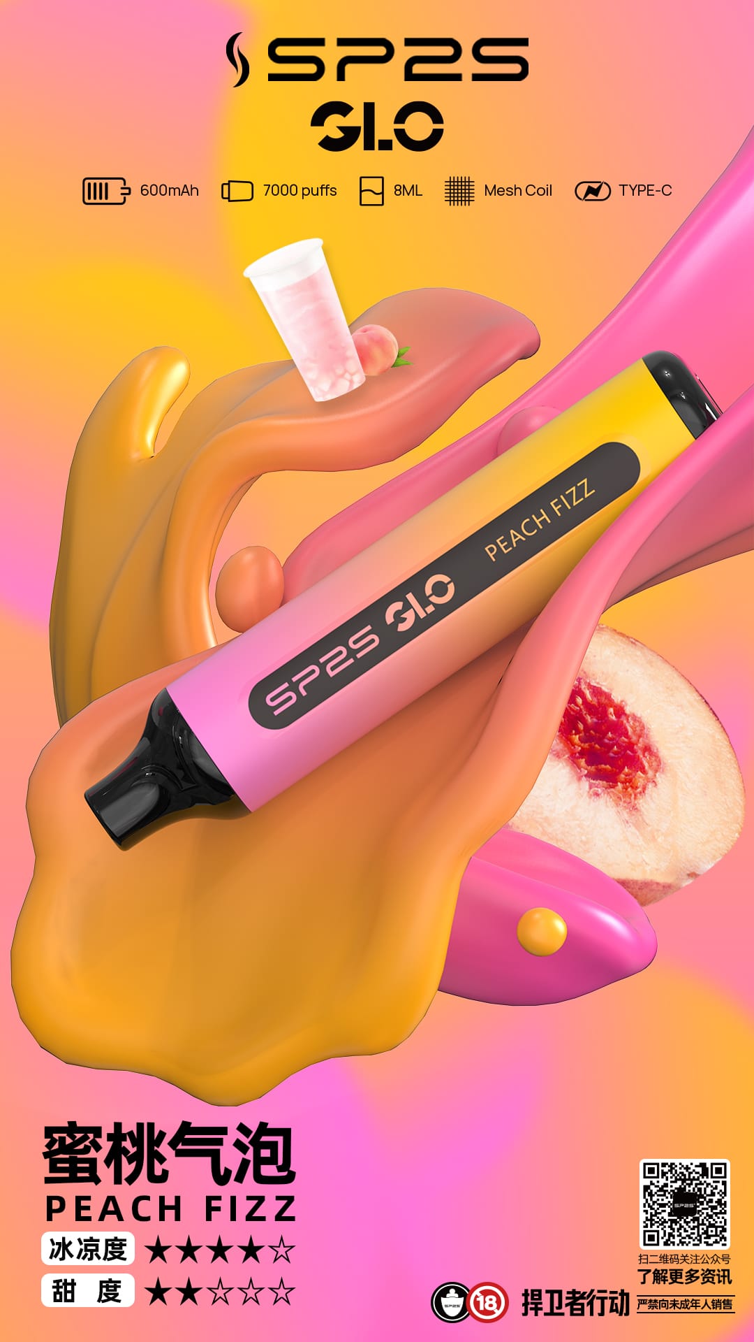 SP2S思博瑞GLO 7000口一次性電子煙,配備8mL大容量煙油與600mAh電池,提供15種精緻口味,涵蓋水果、清涼、茶飲等,滿足多元需求。採用雙芯霧化技術,煙霧細膩,擊喉感純正,支援Type-C快充,台灣現貨,滿3000免運費!